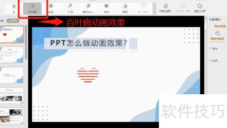 单击动画后,可选择百叶窗等不同动画效果形式。