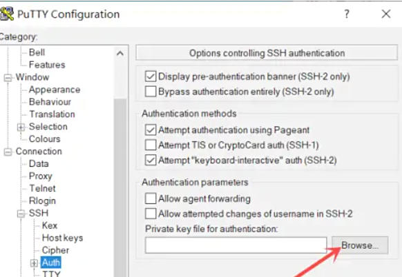 点击 Browse...,选择转换后的 .ppk 私钥文件。