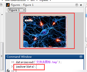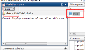 3、然后输入返回指令[data=imread]在主界面将图像转换为数据,如下图所示。