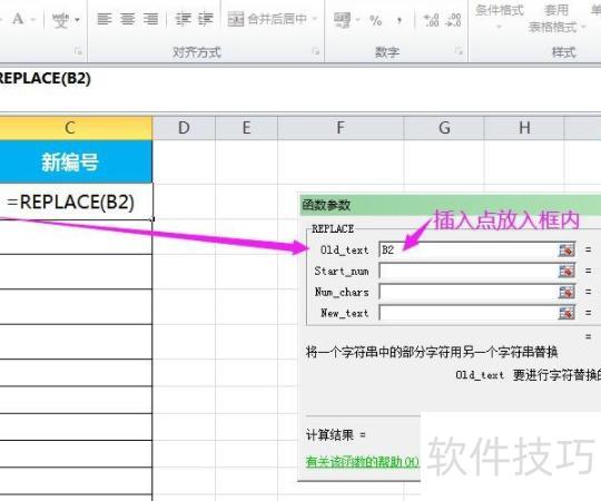在目标单元格输入=REPLACE(),点击公式栏左侧的插入函数按钮,即可弹出函数参数设置对话框。