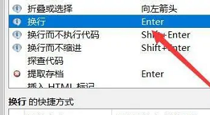2、然后选择键盘点击快捷方式,在右侧窗口中下拉找到换行,确定按键为Enter后点击确定,如下图所示。