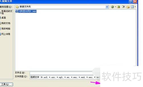 选择文件中的视频选项,在弹出的插入视频文件窗口中找到视频所在路径,选中目标视频后,点击插入按钮即可完成操作。