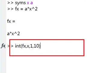 4、再输入int(fx,x,1,10)来求积分,如下图所示。
