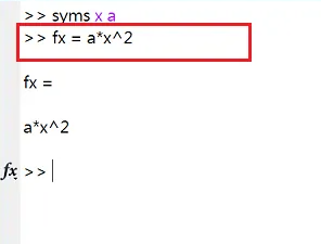 3、输入fx=a*x^2,按回车来定义fx,如下图所示。
