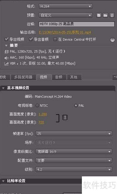 如下几幅图分别展示了1920×1080与1280×720两种分辨率的序列及其对应的导出设置。