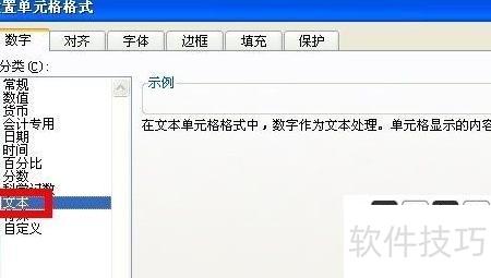进入设置单元格格式后,选择数字中的文本,点击确定即可(所示)。