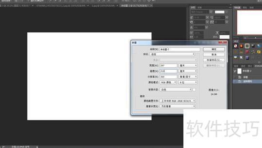 打开PS,选择文件—新建,创建适当尺寸的白色背景文档。