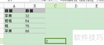 若未以数组公式形式输入公式,按 Ctrl+Shift+Enter 后,C12 单元格仅显示一个结果(2)。
