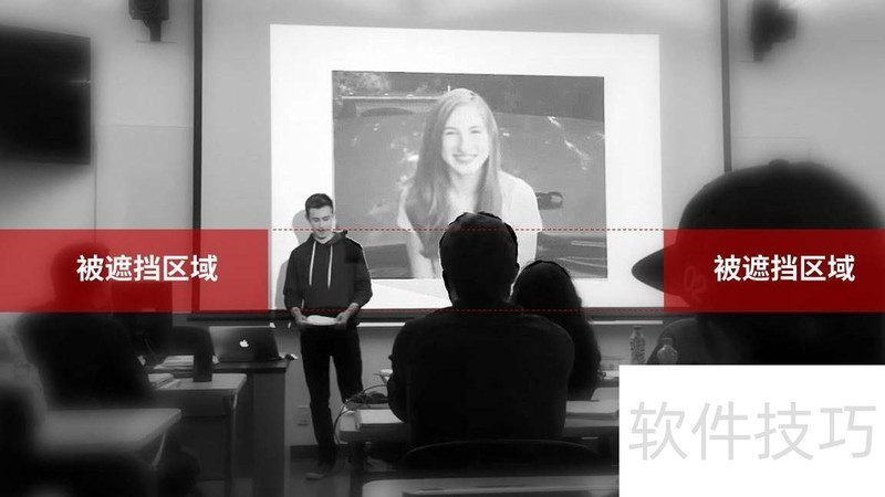 举个简单例子:红色虚线框内的PPT内容,恰好被前方人头遮挡,影响观看效果。