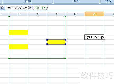 SUMColor(待计算颜色的单元格,参与计算的区域范围)