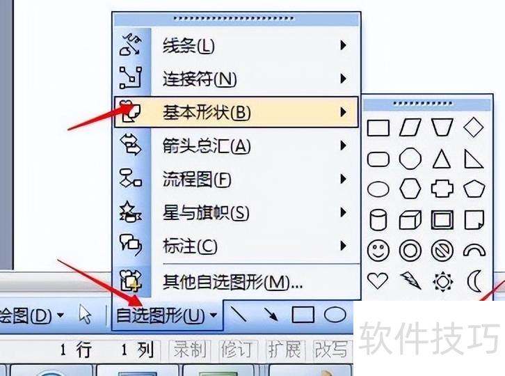 4.2 点击绘图工具栏的自选图形,进入基本形状,在右侧列表中选取大括号符号。