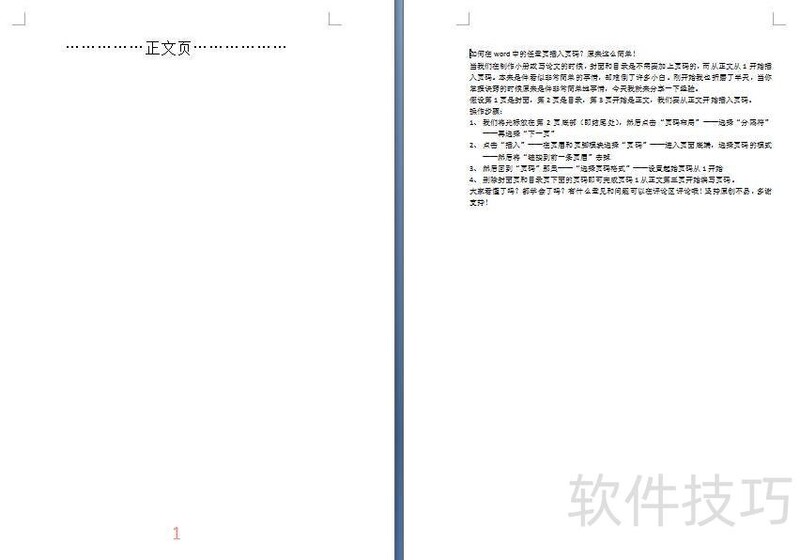 制作小册或论文时,封面与目录不加页码,正文起始页从1开始插入页码。
