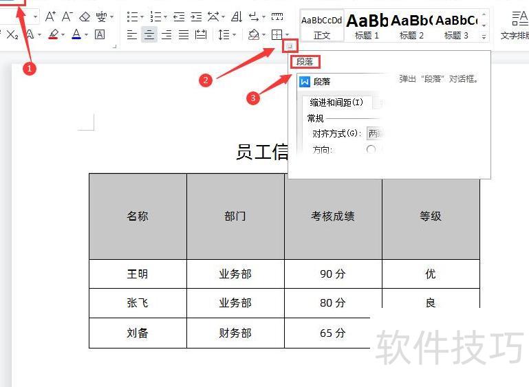 点击选项卡,找到边框旁的三角符号,点击后弹出段落对话框,可设置行间距或调整行高,具体操作所示。
