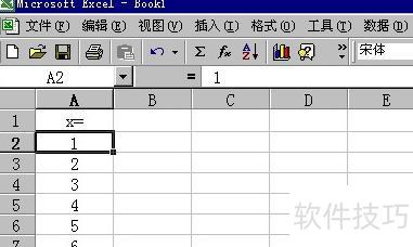 在空白工作表的A列A1单元格中输入X=,用于标识函数的自变量。