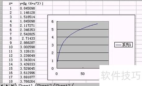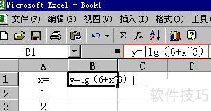 在B列的B1单元格中输入公式:y=|lg(6+x?)|。