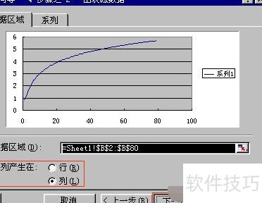点击下一步,勾选数据产生在列,并指定数据区域。