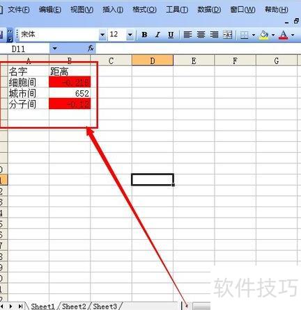 完成全部操作后,小于零的数值将显示为红色,所示。