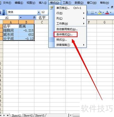 点击菜单栏格式,选择条件格式,即可设置电子表格单元格的条件格式,操作所示。
