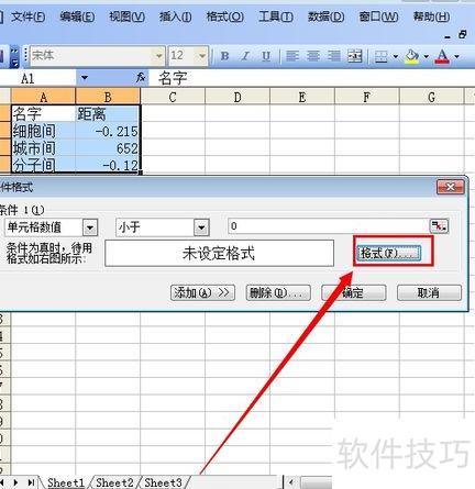 设置完成后,点击格式按钮,进入单元格格式设置界面,所示。