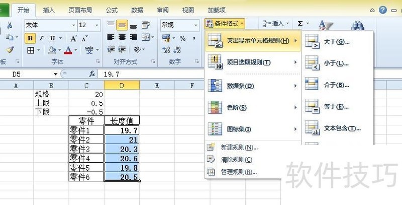 首先,创建或打开一个Excel文件,输入所需数据。选中相关单元格后,点击条件格式,将鼠标移至突出显示单元格规则,选择其他规则,随即弹出新建规则对话框。
