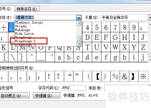 6.4、在字体选项中,向下滚动至底部,选择Wingdings 2。