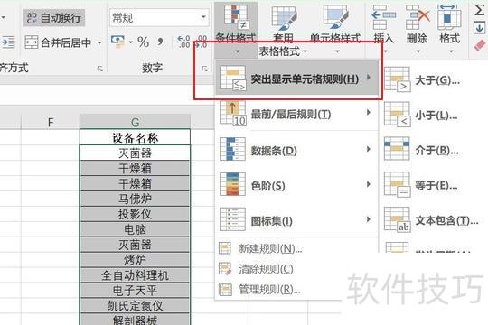 在样式选项卡中选择条件格式,展开下拉菜单。