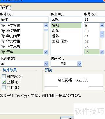 在单元格格式对话框中,将字号设为16(姓名为10.5),并勾选上标选项,效果所示。