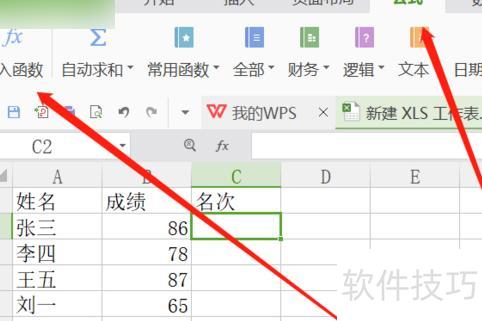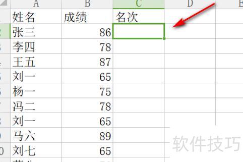 在F2单元格输入公式=RANK(E2,$E$2:$E$4),然后向下填充。若使用公式=RANK(E2,$E$2:$E$4,1),则排名按升序排列。