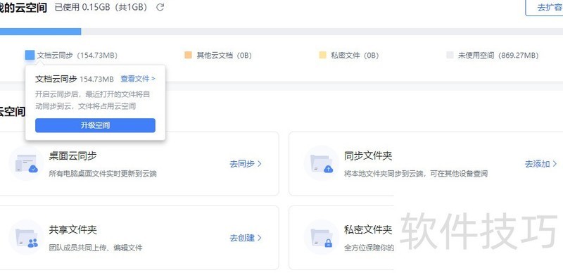 普通账户默认云空间仅1G,解决方法有两种:一是充值成为会员;二是定期清理并删除云空间中不重要的文件。