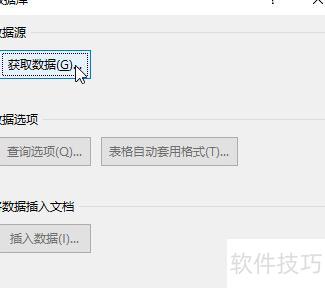 第四步:添加插入数据库功能后,启动该功能,点击数据库对话框中的获取数据按钮。