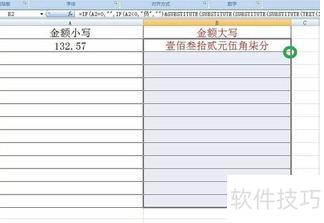 按下回车键后,B2单元格将显示A2单元格金额的中文大写形式。
