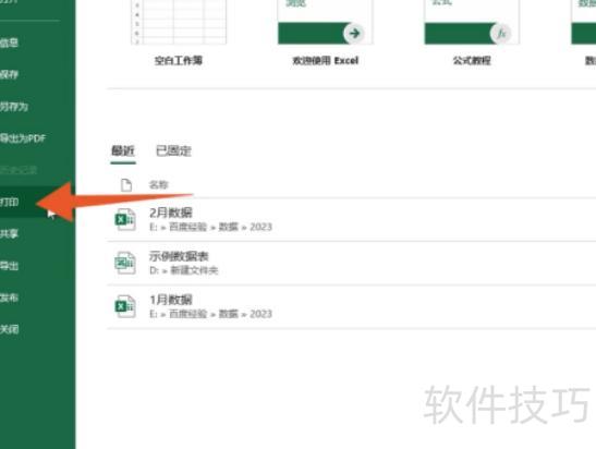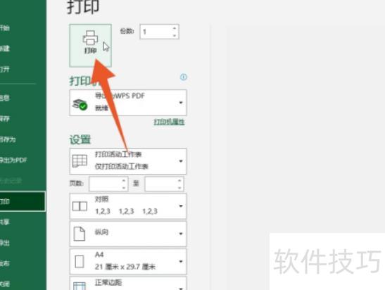 在左侧导航栏点击打印,或直接按Ctrl+P键。