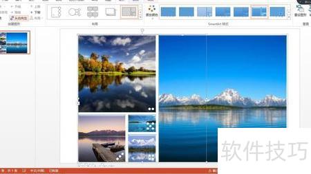 SmartArt工具栏出现后,可在设计中微调版式,常用操作是通过移动按钮调整图片位置。此处将图片左右对调排版,用户也可根据实际需要尝试其他布局方式,灵活应用以达到理想效果。