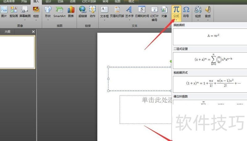 点击插入选项中的公式按钮。