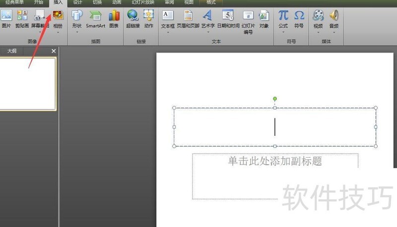 新建PPT,插入空白幻灯片,定位分数位置,点击插入按钮开始添加内容。