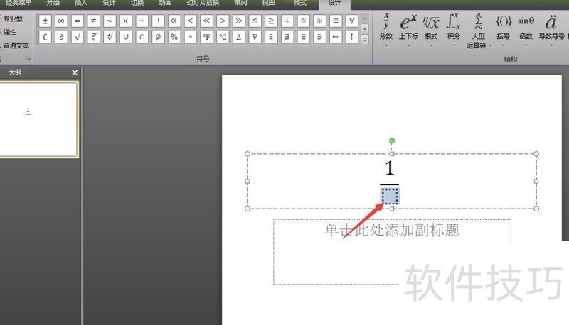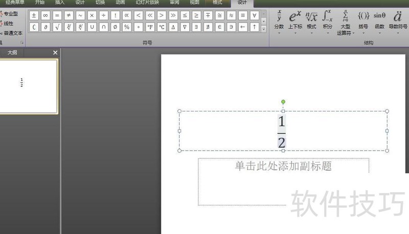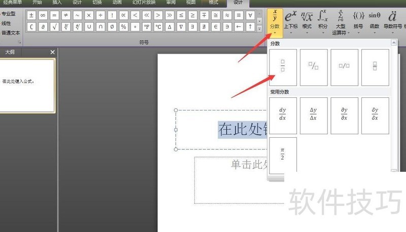 PPT中如何输入分数符号