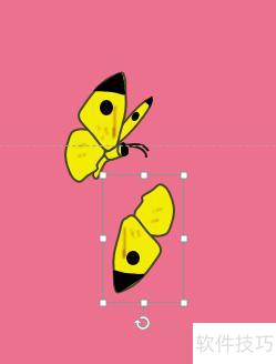 另一侧翅膀同样添加动画,完成后将蝴蝶的双翅与身体同时选中,统一设置路径动画,使三个部分协同运动,最终实现蝴蝶翩翩飞舞的效果。