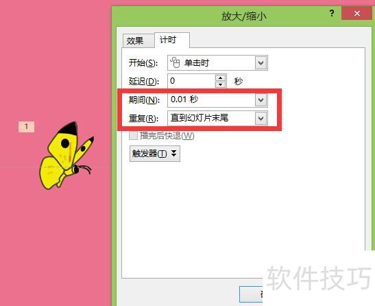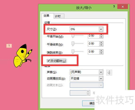添加缩放动作,并按图示设置动作属性。