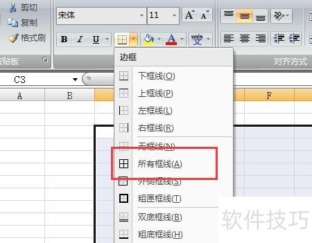 四、所示,点击所有边框后,所选区域将添加边框线。