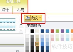 调整单元格底纹在常规功能区未直接显示。选中目标单元格后,功能区会新增表格工具→设计/布局选项卡,进入设计页面,在绘图边框组中点击底纹即可修改单元格背景色。此外,也可通过右键菜单打开表格属性对话框,再进入底纹和边框进行设置,但操作相对繁琐。
