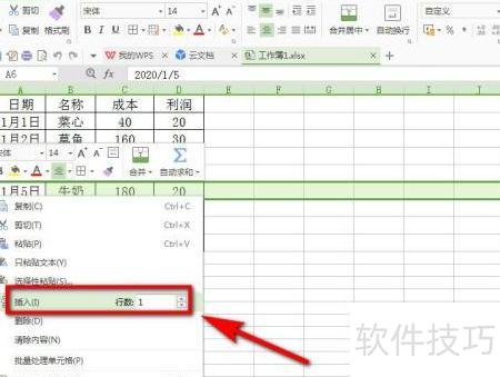 右键点击鼠标,从下拉菜单中选择,并确认要插入的行数。