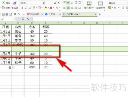 选择需插入行的位置,如要在第5行与第6行之间插入,应选中第6行。