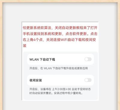 关闭华为手机系统自动更新的方法:进入设置-系统和更新-软件更新,关闭“WLAN环境下自动下载”和“夜间安装”选项;在应用管理中关闭HMS Core自动更新,即可有效阻止系统自动更新。