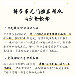 拼多多无门槛优惠券可通过官方活动、APP首页推荐、限时秒杀及节日促销等方式获取,部分活动需参与拼单或关注商品详情页入口。