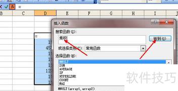 在插入函数页面找不到product函数时,可在搜索框中输入乘积二字,随后点击转到按钮即可查找。