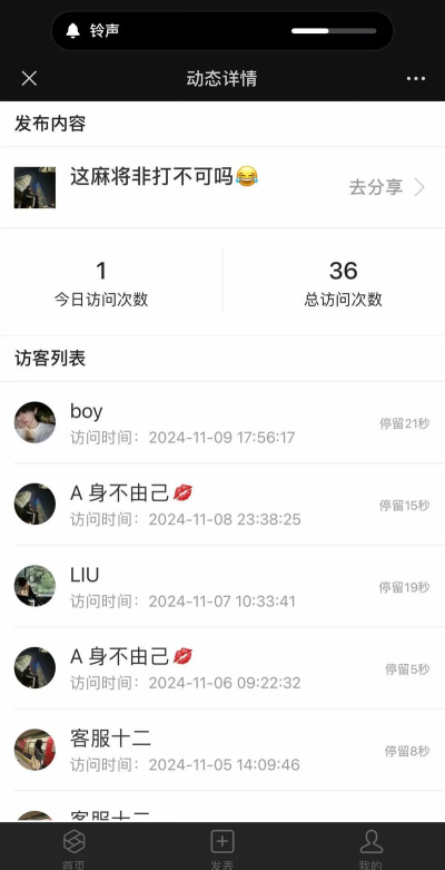 微信朋友圈目前不支持查看访客记录功能,无法知道谁浏览了你的朋友圈。官方未提供此功能,任何声称可查看访客记录的第三方软件均为虚假信息,存在隐私泄露风险。