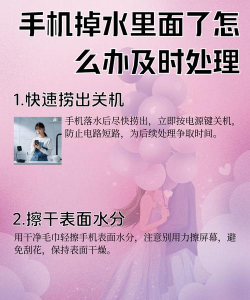 手机掉水后应立即关机,避免操作,拆下电池或断开连接,使用吹风机冷风或纸针吸水,切勿使用热风以防主板变形。