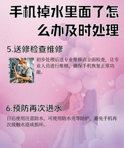 掉进水里后千万不能慌张,尽量不要进行任何操作否则可能会引起主板或电池短路.有条件的可以将手机拆开把电池去下或断开,然后使用吹风机调至冷风吹,切记千万不可使用热风,不然因为受热导致主板变形将会对手机造成更大的损害(严重主板报废电池受热爆炸的风险)和维修难度.吹干后使用酒精进行清理,尽量使用高纯度的酒精,酒精的纯度99%左右最佳,可以是工业医用甚至是食用,酒精纯度低下,主板容易发白,有腐蚀小零件的可能...
