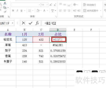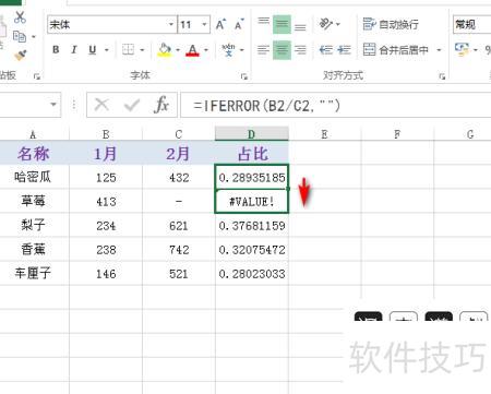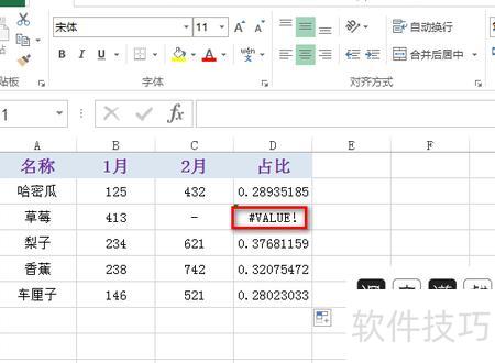 点击错误值上方的单元格,所示。