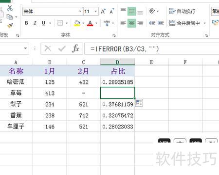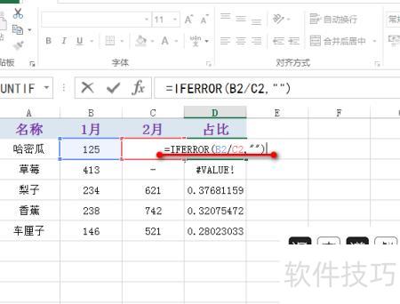 在编辑框中输入IFERROR函数,用于判断错误值,然后按回车键确认。